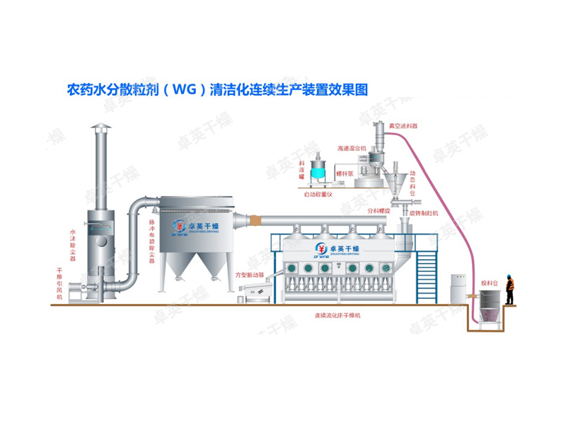 農藥水分散粒劑(WG)的生產一般要經過粉碎、混合(干混)、捏合(濕混)、造粒、干燥和篩分等幾個主要階段。目前的干燥過程大多是間歇式的,本公司針對WG生產特點開發(fā)出連續(xù)式干燥設備,該...